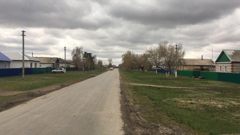 Am 12. Mai fahre ich auf einen Abstecher nach Karasuk. Im Gepäck habe ich einen Umschlag, den mir Tatjana – Ariane’s und meine mittlerweile zur Freundin gewordene Physiotherapeutin – für ihre Schwester mitgegeben hat. Tatjana ist in einem kleinen Dorf Октябрьское (so heißen hier übrigens zu Ehren der Oktoberrevolution sehr viele Dörfer) bei Karasuk als Russlanddeutsche aufgewachsen. 1992 ist die gesamte Familie (7 Geschwister und die Mutter) mit Ausnahme eben dieser Schwester – sie heißt Valentina – nach Deutschland (Berlin) ausgewandert. Nun lebt Valentina mittlerweile ganz allein mit 56 Jahren in ihrer sibirischen Heimat, ganz nah der kasachischen Grenze und überlegt, ob sie jetzt noch – 26 Jahre später – hinterhergehen soll.