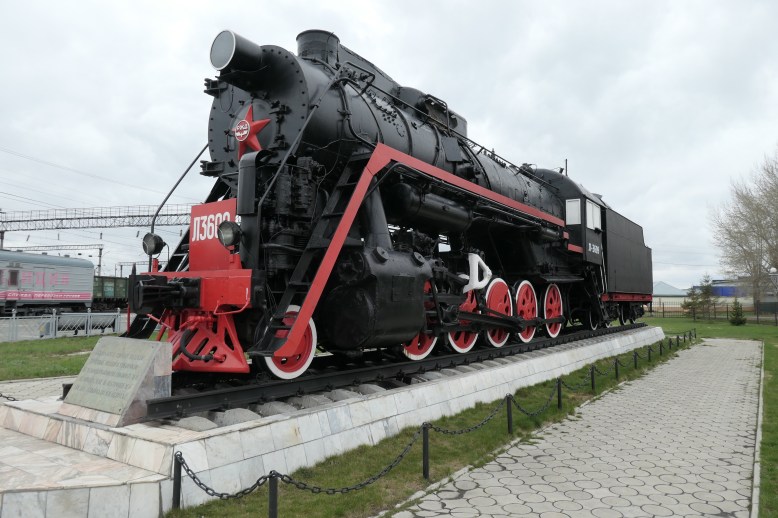 Tief beeindruckt fahre ich zurück nach Karasuk und schaue mir dort noch das wenige Sehenswerte an. Dazu zählt der überraschend pompöse Bahnhof and der Transsiblinie. Die Bahnhofsuhren zeigen entlang der gesamten Strecke über 9 Zeitzonen stets Moskauer Zeit. Ansonsten erhellt noch die Kirche mein Auge, aber leider ist diese geschlossen.
