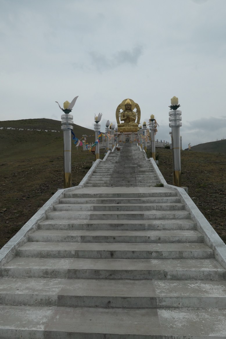Hoch über dem Kloster thront der Buddha, den wir dreimal im Uhrzeigersinn umrunden und dabei einen Wunsch adressieren.