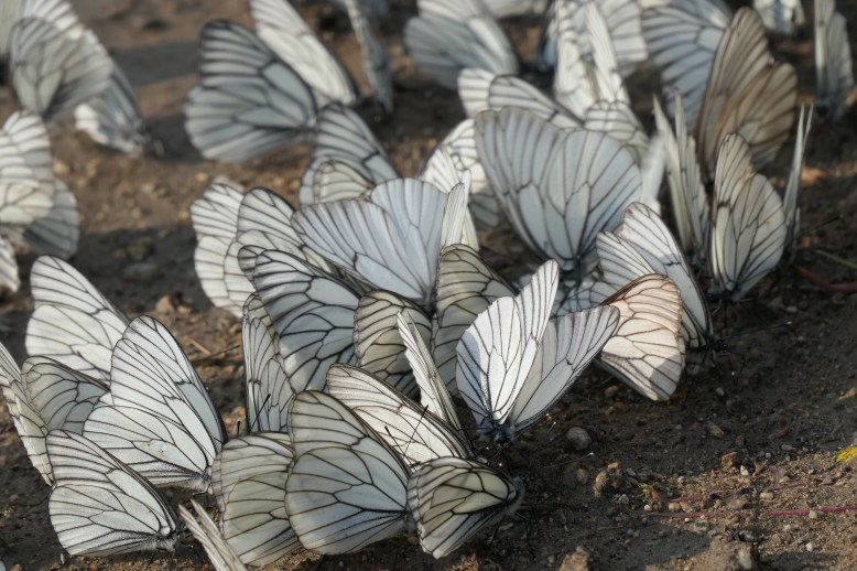 In Khutag Öndör versorgen wir uns mit reichlich Wasser, denn kurz darauf begeben wir uns auf eine lange Strecke über Pisten zum Khövsgöl-See, dem größten Süßwasserreservoir der Mongolei und nach dem Baikalsee der zweitsauberste See der Erde. Die Piste ist anfangs noch ganz passabel, entwickelt sich aber zusehends schwierig mit vielen Matschpassagen und kleineren Flussquerungen. Beeindruckend sind die Abertausenden Schmetterlinge, die sich entlang der gesamten Piste tümmeln. Wann gab’s das zuletzt mal bei uns?