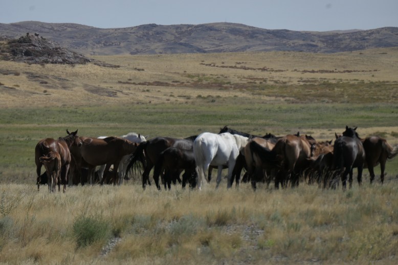 Am Mittwoch stehen nur noch 260km bis Almaty auf dem Programm. Ein Kinderspiel, zumal nun die Straßen wirklich gut sind. In der Ferne tauchen schon die schneebedeckten Gipfel des Tien Shan Gebirges auf, zu dessen Füßen Almaty liegt. Wir passieren schöne Seen und Mittelgebirge in einer kaum besiedelten Gegend, und finden nur kurz vorm Liegenbleiben die erste Tankstelle nach 150km. Das ist mir auf der ganzen Tour noch nicht passiert!