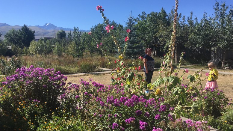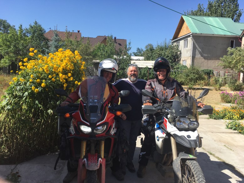 Karakol empfängt uns mit einer beeindruckenden Gebirgskulisse im Hintergrund. Wir steigen in Memo’s Guesthouse ab. Memo ist Italiener und selbst Mopedfahrer. Er ist auf einer Reise vor 9 Jahren hier hängen geblieben, weil er sich so in das Land und den Ort verliebt hat – allzu leicht verständlich! Das Guesthouse ist mit viel Aufwand und Liebe hergerichtet worden, bietet einen ungewöhnlich guten Standard, und ebenso aufwendig und liebevoll wird das Essen zubereitet. Eine gute Wahl! Memo selbst ist eine echte Type, redet sehr viel, ist aber voll passioniert in dem was er tut!