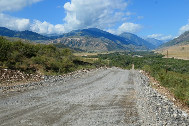 Nach etlichen Pässen auf vollkommen zerstörten Straßen kommen wir abends in Saty an, wo wir ein gemütliches Guesthouse finden und trocken in den nächsten Sonnentag kommen.