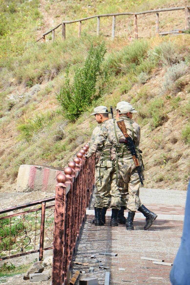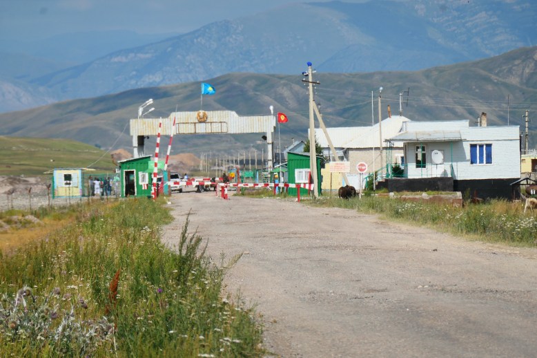 Der weitere Weg zur kirgisischen Grenze führt wieder an Aksay vorbei und dann weiter über einen Pass nach Kegen, der letzten Stadt auf kasachischer Seite. Danach ist die Welt zu Ende und die Zuständigkeit für den Straßenunterhalt offensichtlich auch. 20km fürchterlichsten Wellbleches präparieren einen für alle zu erwartenden Quälen beim Grenzübergang. Doch diese Erwartungen erfüllen sich an dieser Grenze nicht. Ganze 12 Minuten dauert die Prozedur auf beiden Seiten in Summe. Im Grunde werden nur die Pässe gestempelt und der Kasache schaut noch halbherzig in die Seitentaschen. Der Kirgise will gar nicht sehen, was man ihm ins Land bringt, dafür klärt er einen darüber auf, wie toll sein Land und wie schlecht Kasachstan sei!