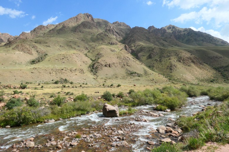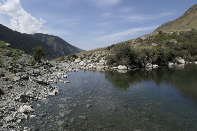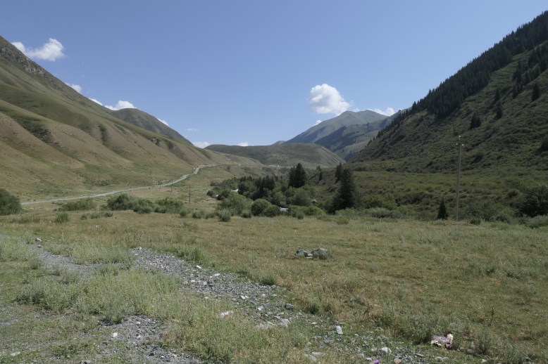 Das Tal zweigt nordöstlich von der Hauptstraße nach Bischkek ab. Dort ist es noch sehr weit und landwirtschaftlich genutzt. Weiter oben wird es zum Schutzgebiet, was sich an einem Schlagbaum in barer Münze auszahlt.