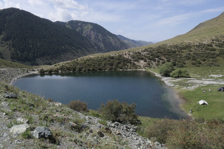 Danach wird es einsam und steil. Nicht einmal Nomaden sind hier oben anzutreffen. Die schwierige Auffahrt wird dann auf 2.700m Höhe mit einem verträumten Angelsee belohnt, an dem sogar etliche einheimische Familien beim Picknick anzutreffen sind.