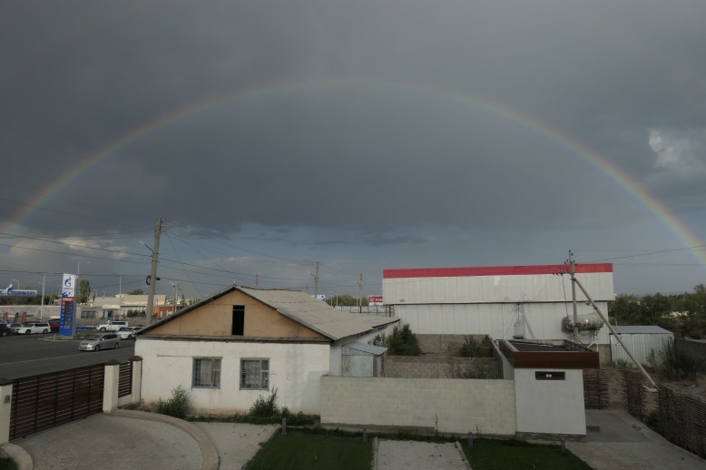 Zurück im Ort bekommt Steve zur verabredeten Zeit sein Handy repariert zurück. 100 US$ wechseln den Besitzer und Steve ist wieder mit der Heimat verbunden und glücklich! Wir erreichen unser Hotel gerade rechtzeitig vor dem Gewitter, das uns anschließend einen geschlossenen Regenbogen beschert.