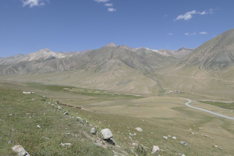 60km vor dem See wird es dann so richtig wild. Eine recht grobe Piste führt weit in ein breites Tal hinein, von dessen Ende der Kalmak-Pass sich auf stolze 3.447 Meter hinaufschraubt.