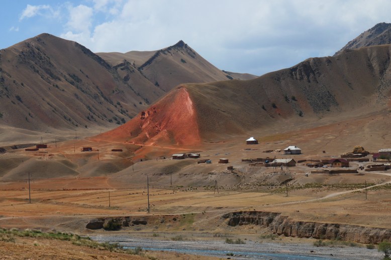 Diese Strecke stellt bereits den kirgisischen Teil des Pamir-Highway dar. Nachdem die Vororte von Osh hinter uns liegen wird das Olcho-Tal sehr einsam. Der Fluss hat sich tief in den roten Sandstein gegraben und dominiert das Tal mit zahlreichen Stromschnellen. Linker Hand tauchen immer wieder interessante, rote Sandsteinformationen auf und dahinter ragen, schwarz die 5.000-er Berge in die Höhe.