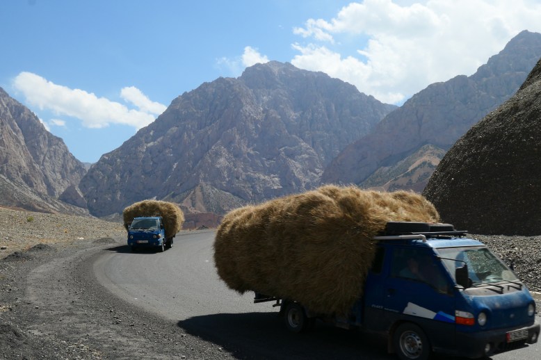 In Alichur wählen wir – wieder auf Empfehlung der drei Schweizer Radfahrer – das Homestay Shukrona. Rachima – pensionierte Lehrerin der Schule von Alichur – wohnt hier mit Ehemann und namenstiftender Tochter Shukrona (14), die hier zur Schule geht und später gerne im Ausland Medizin studieren will. Rachima spricht sehr gut Englisch und erklärt uns das Leben in Alichur. Ihre beiden großen Töchter sind verheiratet, haben beide studiert und leben in Dushanbe und in Moskau. Der Ehemann ist für 15 Tage in den Bergen, wo er Heu bündelt und für den Transport nach Hause vorbereitet, damit die Versorgung der Kühe im Winter im Stall gewährleistet ist.