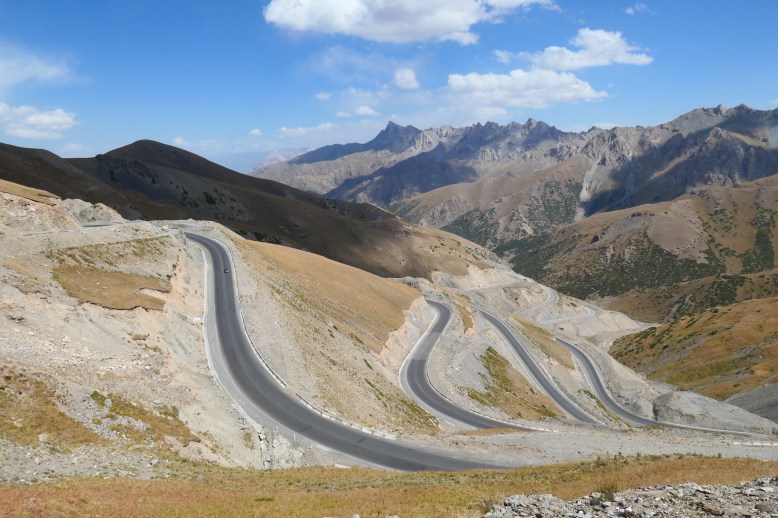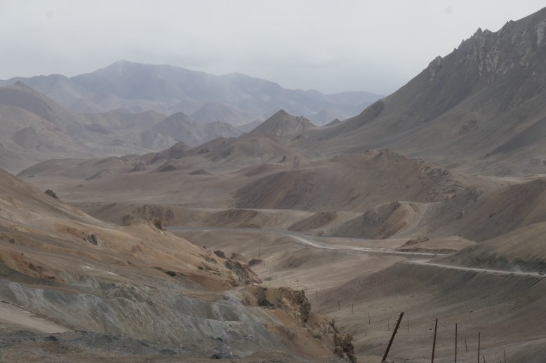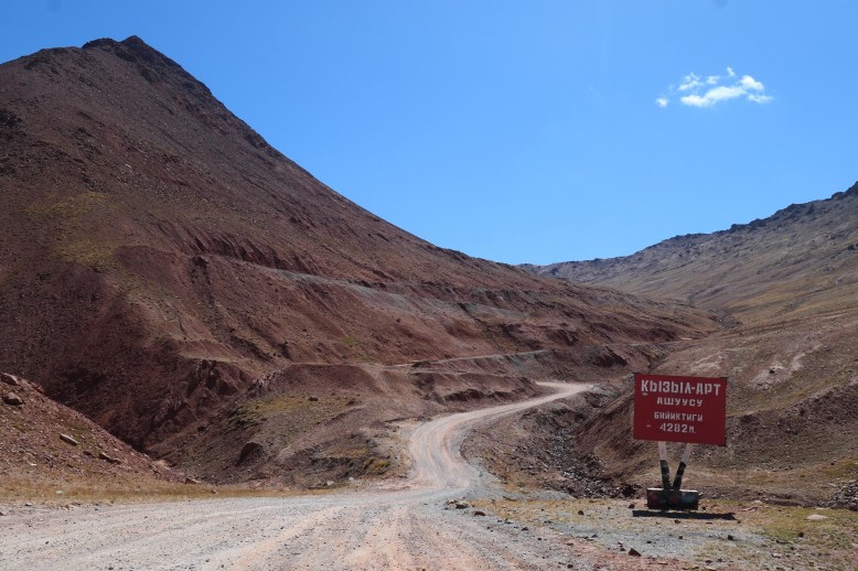Auch diese Nacht schlafe ich sehr schlecht, wobei mir die Höhe ansonsten keinerlei Probleme bereitet. Für Steve gilt das bedauerlicherweise nicht. Er fühlt sich nicht gut. Am Mittwochmorgen warten wir, bis die Sonne die Nachtkälte besiegt hat und fahren dann auf den höchsten Pass auf der gesamten Pamirroute, dem 4.655m hohen Ak-Baltai-Pass . Der Anstieg ist unspektakulär, beginnt er doch auf 3.900 Metern. Doch der Ausblick vom Pass auf’s nächste Tal ist schon besonders.