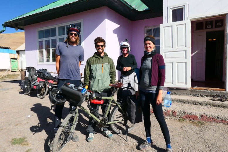 Wir wählen das erste neben der Tankstelle und treffen dort auf Andi, Leonie und Florian – drei supernette Velofahrer aus der Schweiz, die in Gegenrichtung unterwegs sind und den Pamir-Highway gerade bezwungen haben. So können wir wertvolle Infos austauschen, die uns auf dem weiteren Weg noch nützlich sein werden.
