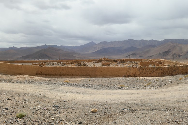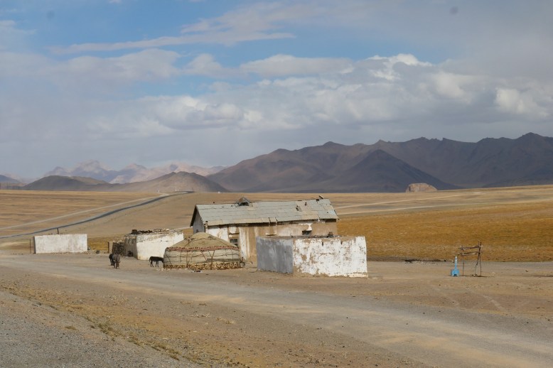 Rund 100km sind’s jetzt zum nächsten Dorf Alichur. Die Strecke führt über ein Hochtal auf 3.200m Höhe und ist in gut zwei Stunden zu schaffen. Der Himmel über den linksseitigen Bergen zieht sich bedrohlich dunkel zu. Das soll wohl nicht ungewöhnlich sein, doch Regen bedeutet es nicht, denn den gibt es um diese Jahreszeit so gut wie nie.