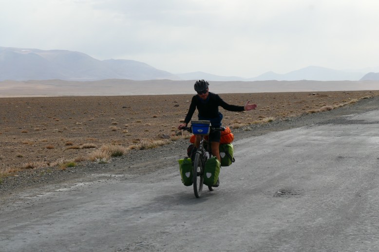 Heute treffen wir besonders viele Radfahrer, die mit Abstand die häufigst anzutreffenden Reisenden auf dem Pamir-Highway sind. Mopedfahrer gibt es nur wenige und Autotouristen so gut wie gar keine. Selbst begeisterter Fahrradreisender, kann ich nur den größten Respekt für die Radfahrer aufbringen, denn in dieser Höhe und auf diesem Untergrund ist das Radfahren eine geradezu unmenschliche Tortur. Und dann sind die Räder auch noch unglaublich schwer beladen. Die haben allesamt viel mehr Gepäck dabei als ich – also für mich wäre das nichts!