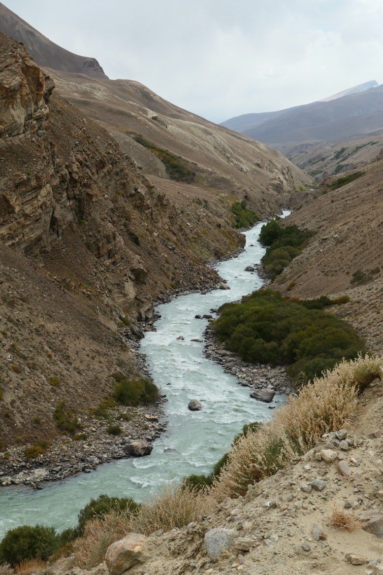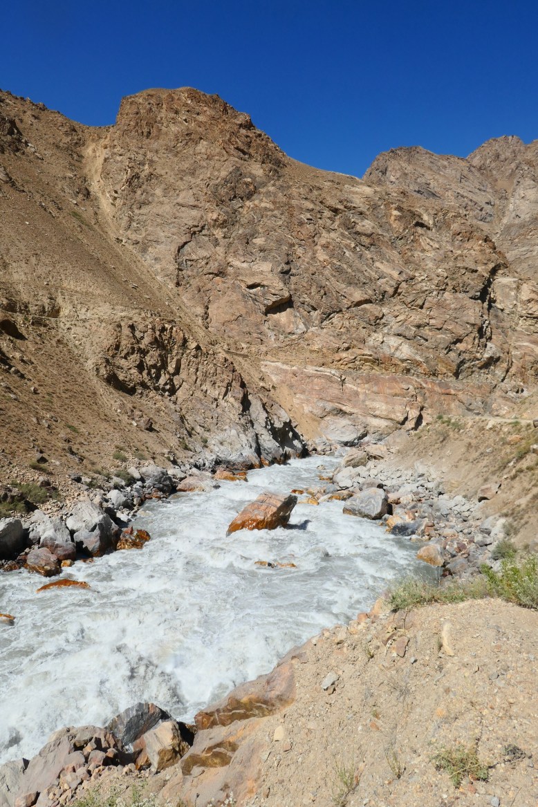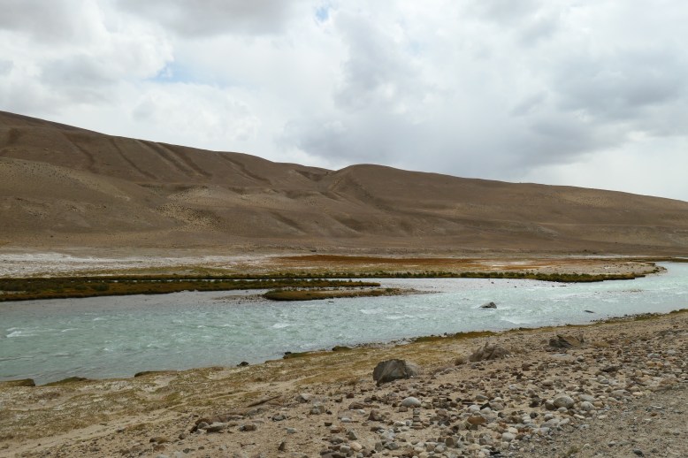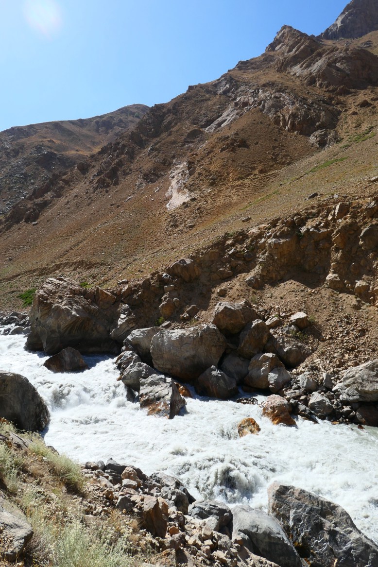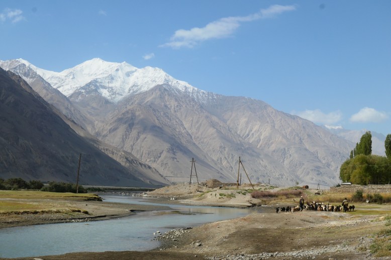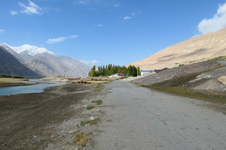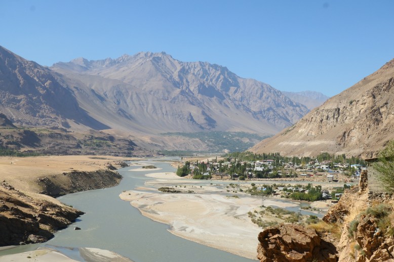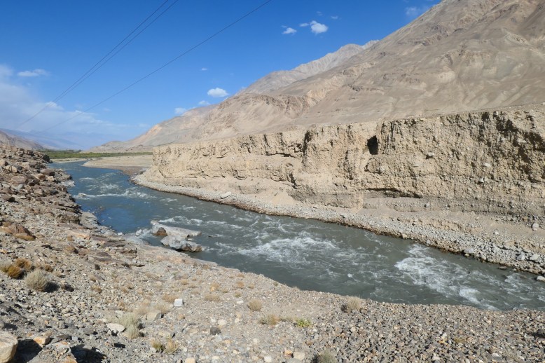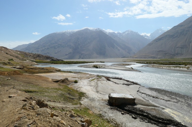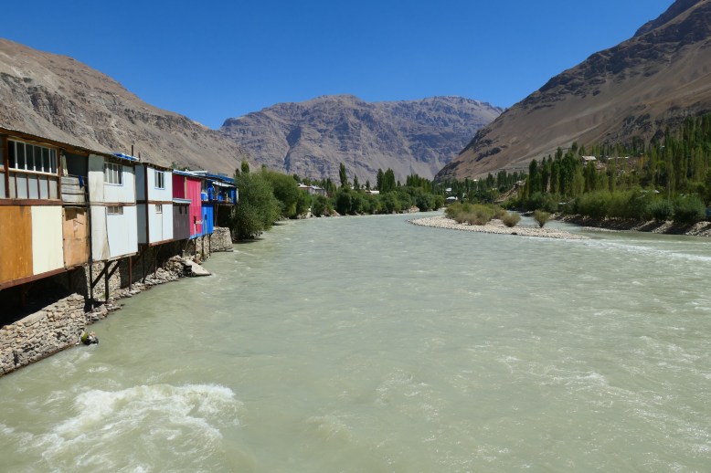 Ab Langar, dem ersten Ort auf Tadjikischer Seite, verändert sich meine Uferseite. Hier vereinigen sich Pamir und Wakhan und werden gemeinsam zum Panj. Diesem werde ich noch fast 600km entlang der Grenze zu Afghanistan folgen.