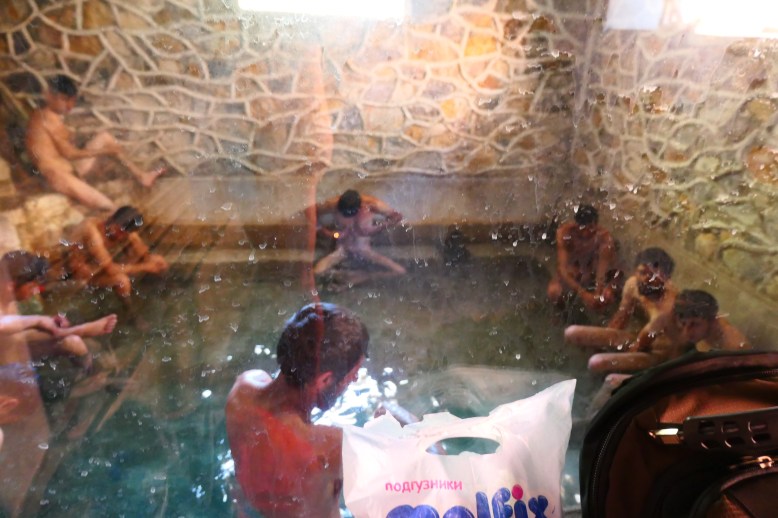 Beim Anblick gewöhnlicher PKW à la Lada und Opel Astra fühle ich mich mit meiner Enduro schon ein wenig vorgeführt! Im Bad ist es dementsprechend gar nicht so leer. Männlein und Weiblein haben getrennte Bäder und – it goes without saying – natürlich sind diese wieder überdacht. Ich teile das kleine Becken mit 10 nackten Tadjiken und ergreife nach gut 10 Minuten die Flucht, als diese ihre Shampoos herausholen und das ganze in ein Schaumbad verwandeln.