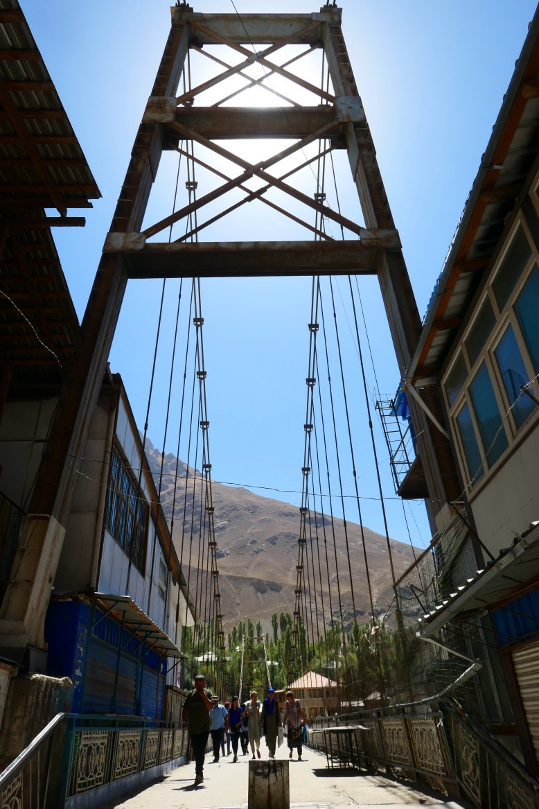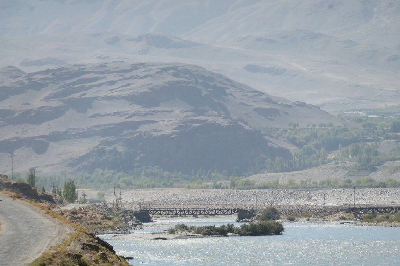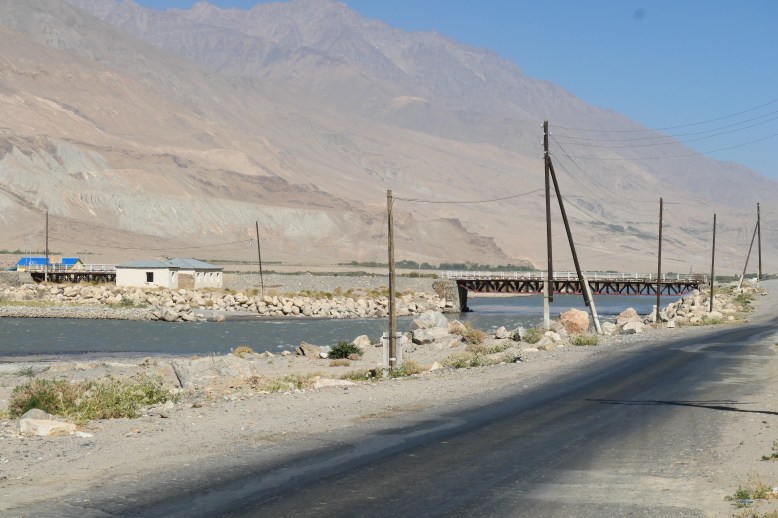 Am Samstagmorgen breche ich wieder alleine auf. Ich habe die Pause hier bewusst so terminiert, weil immer am Samstagmorgen etwas außerhalb von Ishkashim der sogenannte Afghanenmarkt jenseits des Panj stattfindet, der über die 2006 errichtete Brücke ohne Visum besucht werden kann – zumindest in ruhigen Zeiten. Es ist dies ein kleines Hoffnungszeichen in dem seit Jahren schwelenden Konflikt zwischen den Nachbarstaaten. Als ich an der Brücke ankomme, finde ich diese mit hohen Toren verschlossen und am anderen Ufer keine Spur von einem Markt. Ein Grenzer, der mich beinahe beim heimlichen Photografieren der Brücke erwischt hätte, erklärt mir dann, dass es den Markt seit einigen Monaten nicht mehr gebe – sehr schade eigentlich! Offensichtlich ist die Lage nicht mehr so ruhig.