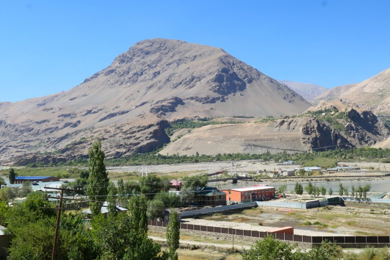 Am Dienstagmorgen müssen wir schon vor sieben Uhr Kalaikum verlassen, denn danach werden die Straßen bis zum Nachmittag für den Präsidenten gesperrt bleiben. Wir finden schon so früh die ganze Stadt auf den Beinen. Überall wird noch hektisch aufgeräumt und geputzt. Wir tanken nochmal voll und machen uns auf den Weg – weiter dem Panj und der afghanischen Grenze entlang. Nach 25 Kilometern wird aus der schlechten Piste eine Traumstraße, wie sie selbst in Deutschland nicht so oft anzutreffen ist. Über den Panj führt jetzt ab und zu mal eine Brücke. Diese sind aber allesamt verschlossen und streng bewacht. Photos lassen sich nur heimlich und aus großer Entfernung aufnehmen.