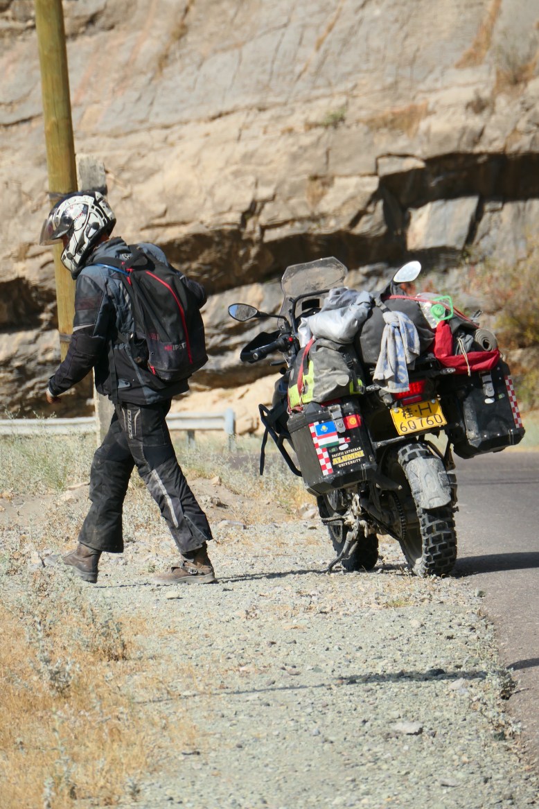 Am Freitagmorgen mache ich mich dann selbst auf den Weg nach Usbekistan. Dabei habe ich wieder amerikanische Begleitung. Björn aus Seattle fährt mit seiner in China zugelassenen Benelli 500 Enduro auch nach Samarkand an diesem Tag. Er war 5 Jahre in China und fährt nun auf dem Motorrad westwärts nach Hause.