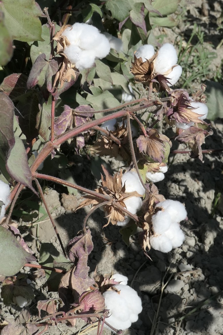Am Sonntag nach einem ausgiebigen Frühstück nehme ich die nächste Etappe nach Bukhara unter die Räder. Es sind nur 270 Kilometer und die Straße ist ganz OK, wenngleich nicht wirklich gut. Unterwegs gibt es eigentlich nichts zu sehen in der flachen Steppe außer den riesigen Baumwollfeldern. Dieser Anblick ist mir vollkommen neu. Aus der Ferne sehen die Pflanzen in ihrem staubigen grün nicht sehr hübsch aus, doch aus der Nähe betrachtet ist es ein sehr schönes Gewächs, wenn es seine Frucht freigibt.