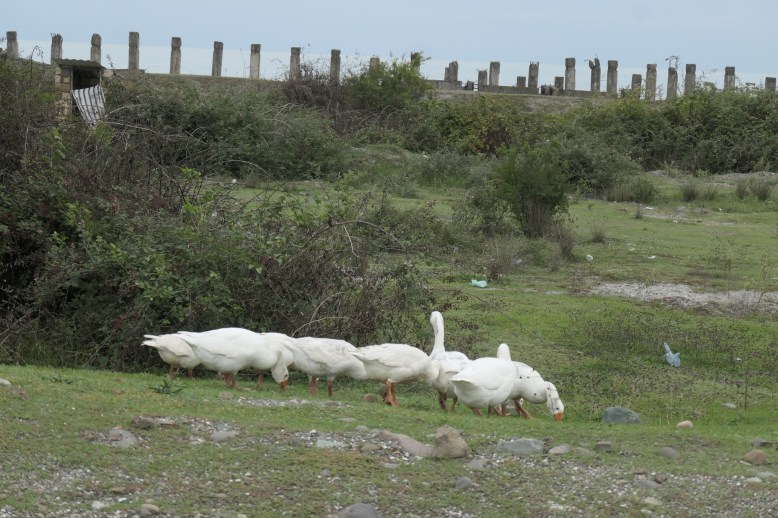 Was hier sehr auffällt, sind die vielen Tiere auf der Straße. Diese teilt man sich mit Gänsen, Kühen, Schafen, Schweinen und jede Menge Hunde!