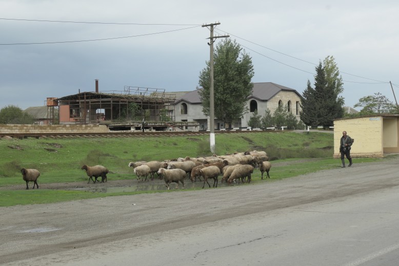 Dann zurück zum letzten Posten, wo ich jetzt sogar einen Tee bekomme und zwei Minuten später aus dem Iran entlassen werde. Beim Aserbaidschaner geht’s recht schnell, nur dass jeder Inhalt meiner Taschen gründlich inspiziert wird und ich danach quasi alles wieder neu einpacken muss. Egal – ich bin in Aserbaidschan! Und sofort begegne ich wieder dem mir so vertrauten postsozialistischem Charme der verfallenen Gebäude und ratternden Lada, Kamaz & Co.