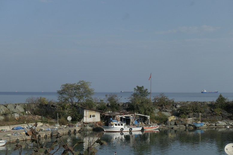 Bei Bartin verlasse ich (ungern) die Küste, die mich bis hierhin rund 1.000 Kilometer begleitet und gut unterhalten hat. Es folgen gut 100 Kilometer durchs Gebirge – noch ganz abwechslungsreich – und dann 200 Kilometer auf der Schnellstraße gen Istanbul. Der Fun-Faktor geht zurück auf Null. Zudem stellt sich ein komisches Wetter ein: Hochnebelartige, dunkle Bewölkung aus der vor Istanbul sogar einige Regentropfen fallen. Bei Gebze – 25 km vor Istanbul – gibt es eine nette Halbinsel im Marmara-Meer. Man glaubt es nicht, wenn man nur 4 km davor von der Schnellstraße abbiegt und erstmal durch ein unfassbar verrottetes und stinkendes Industriegebiet kommt. Hier haben sich auch deutsche Firmen, wie Henkel und BASF, niedergelassen. Doch gleich danach führt der Weg ins Grüne und zur Halbinsel. Gleich am Anfang gefällt mir zur Rechten ein nettes Hotel, das sich vier Sterne ans Revers heftet. Wie überall, ist auch hier nichts mehr los, und man überlässt mir wieder zu einem Spottpreis ein sehr schönes Zimmer mit Balkon zum Meer. Dort sitze ich nun und schreibe diese Zeilen, während ein paar Tropfen nieder gehen und sich die Lichter Istanbuls auf dem glatten Meerwasser spiegeln – so romantisch!