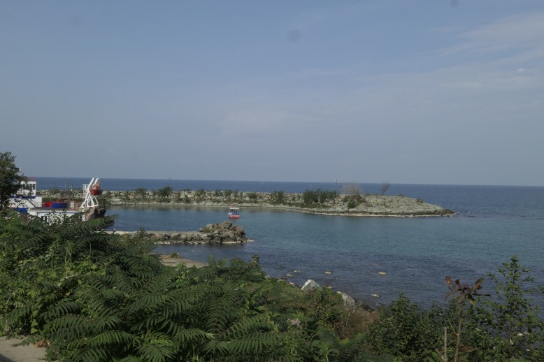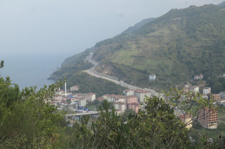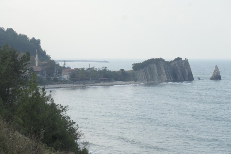 Der Montag beginnt zunächst auf der gleichen Schnellstraße, doch irgendwann biegt die Hauptstrecke gen Ankara und Istanbul ins Landesinnere ab und ich bleibe an der Küste. Diese wird ab Sinop richtig wild und steil. Das Vorankommen gleicht hier der korsischen Westküste – wem das was sagt – sprich auf steilen, sehr kurvigen Straßen mit schlechtem Belag schafft man durchschnittlich 40 km/h.