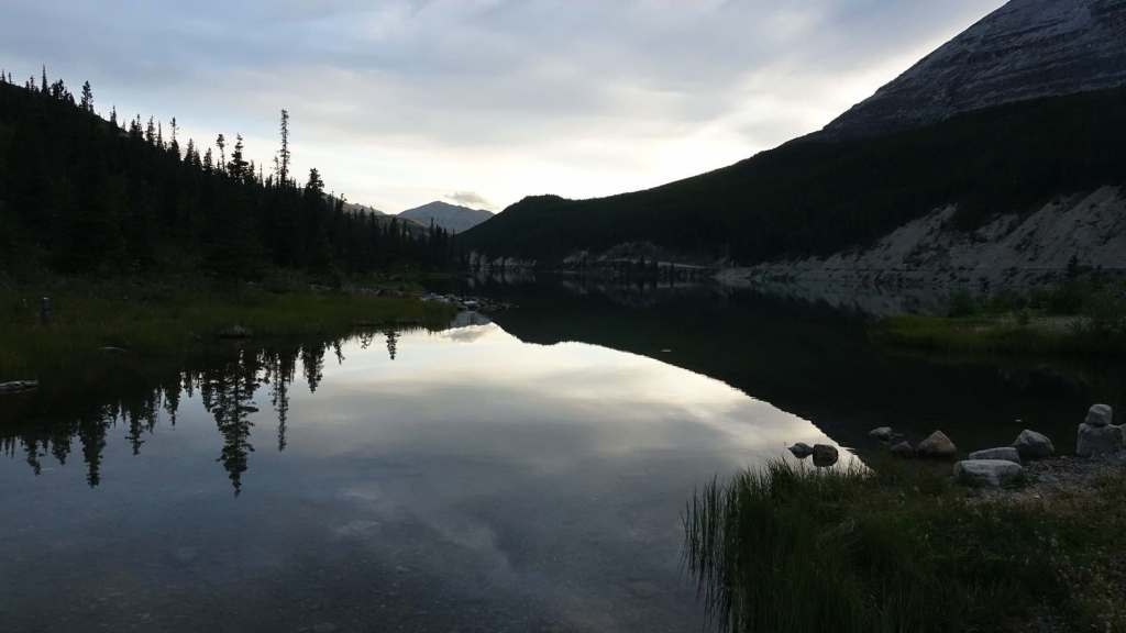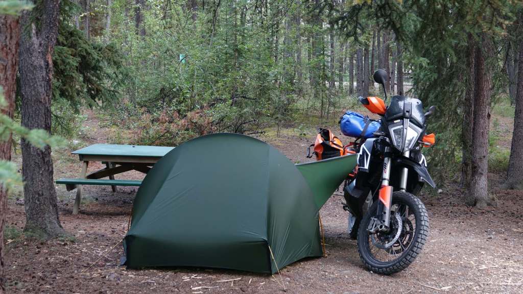 Dementsprechend erleichtert entdecke ich auf der Passhöhe einen Campground – wunderschön am idyllischen Summit Lake gelegen! Hier kommt dann, ungeachtet der späten Stunde, der Campwart noch während ich das Zelt aufbaue und kassiert die Gebühr, die ich für diesen tollen Ort gerne zahle!Es herrscht hier oben eine unbeschreibliche Stimmung mit zum Teil düsteren Woken am spiegelnden See, eingeschlossen von hohen Bergen.