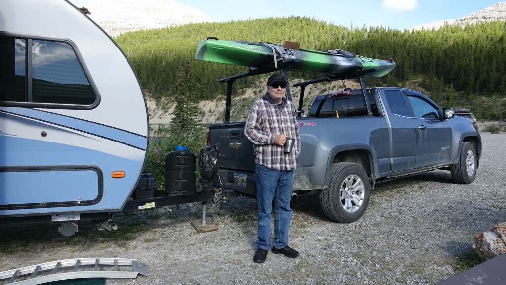 Ich treffe hier auf Fred Fern, einen in Soest geborenen Kanadier von Vancouver Island. Sein Vater war Ende der 50-iger Jahre in Deutschland beschäftigt, aber nicht beim Militär. Ich erhalte wertvolle Infos über die weitere Strecke, denn Fred ist gerade auf dem Rückweg aus den North Territories. Er ist ein kurioser Typ, ausgestattet mit allen Militaria gegen Bären. Das reicht vom Bärenspray über ein echt furchteinflößendes Messer bis zur „Shotgun“, das er alles stets bei sich trägt! Dennoch macht es Spaß, sich mit Fred zu unterhalten. Am Morgen bekomme ich zum Abschied wieder einmal einen Kaffee!