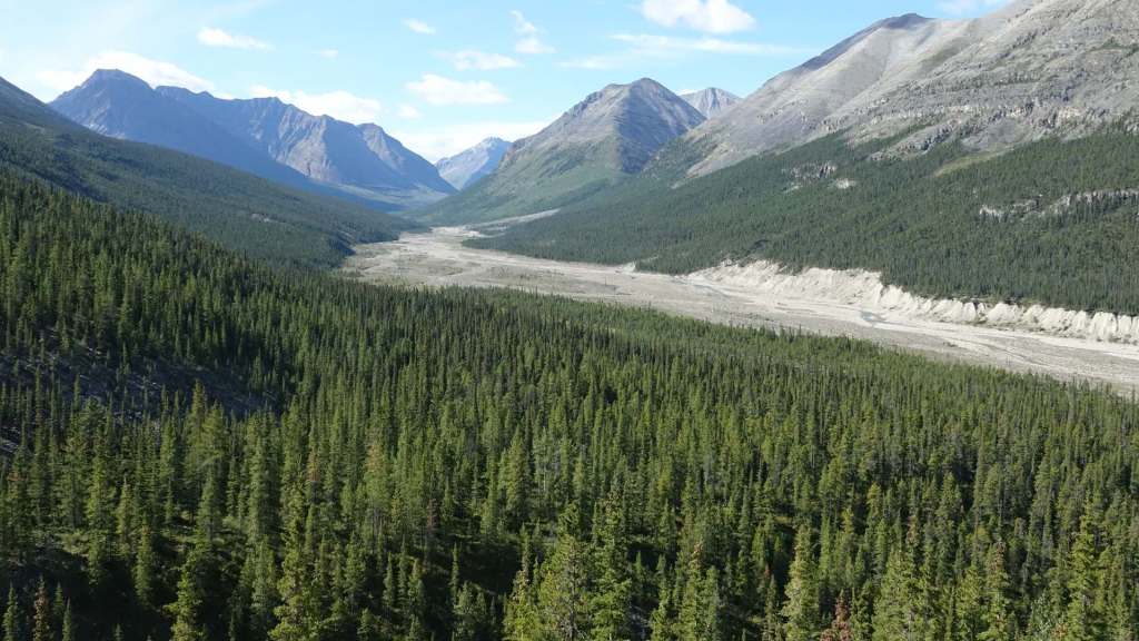 Sonnig und kühl geht es auf 1200m Höhe weiter zum Muncho Lake. Die Gebirgslandschaft wird immer großartiger. Riesige, derzeit trockene, Flussbetten zeugen von den gigantischen Wassermassen, die hier von Mai bis Anfang Juli aus den Bergen fließen. Ich fühle mich in dieser Mega Landschaft wie ein Sandkorn in der Sahara!