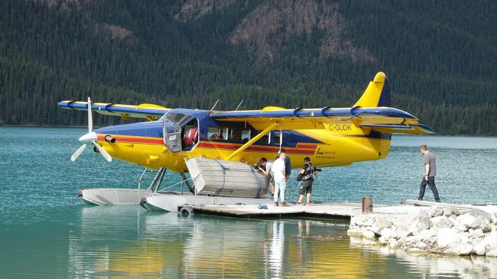 Am Muncho Lake angekommen, ziehen mich zwei Wasserflugzeuge zum Seeufer. Eines – das schönere von beiden – wird gerade mit allerlei professioneller Kameraausrüstung beladen. Es ist ein Fernsehteam des ZDF, das hier gerade eine Doku über Buschpiloten dreht. Ich warte den Start noch ab, bevor ich mich weiter in Richtung Watson Lake bewege.