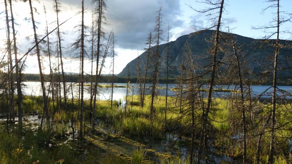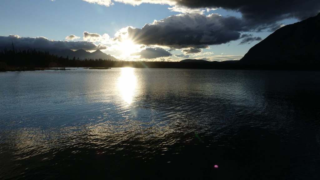 Mich hält in Watson Lake nicht viel, also nehme ich noch ein paar Kilometer unter die Räder. Nach 65 km taucht rechter Hand ein ganz passabler Campground auf, den ich für die Nacht wähle. Außer einem kurzen Gespräch mit einem Texaner, der seinen Wohnwagen 10.000 Meilen durch die Gegend zieht und dabei 7.000 US$ für Sprit ausgibt, gibt es von hier nichts weiter zu berichten, als dass die Mücken den Ort auch toll finden.
