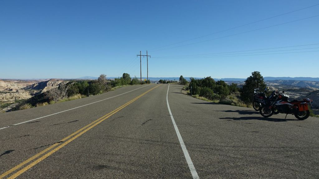 Wir genießen – dem Campingvan sei’s gedankt – ein Piknik im Nationalpark und nehmen dann die Schlussetappe nach Tropic unter die Räder. Jetzt wird die Strecke wirklich spektakulär. Auf der Abruchkante in den Canyon, in dem auch Capitol Reef liegt, fahren wir hoch über die riesige, weite Canyonlandschaft und wechseln etwas später auf die Kante eines benachbarten Canyons. Bei diesem Wechsel verläuft die Straße eine Weile lang auf dem schmalen Grat zwischen beiden Canyons. Der Grat ist kaum breiter als die Straße selbst. Zu beiden Seiten schauen wir sofort in die Tiefe – nichts für Leute mit Höhenangst!