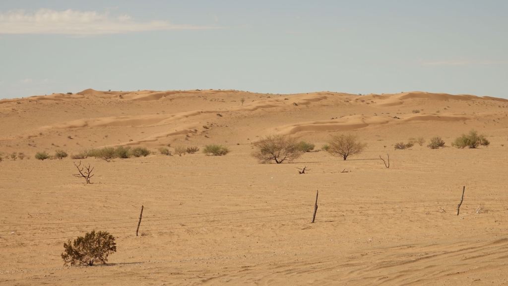 Um noch möglichst lange von den weniger heißen Morgenstunden zu profitieren, brechen wir um acht Uhr aus San Louis auf. Für die kommende Strecke ist ein gutes Durchhaltevermögen gefragt. Es geht nämlich einige hundert Kilometer durch die Altar Wüste. Das ist wenig anregend und mit zunehmender Hitze auch sehr ermüdend. Rechter Hand wechseln sich karge Büsche mit Sanddünen ab, und zur Linken begleitet uns stets der Grenzzaun vom „Greatest President ever“. Eigentlich war dieser mal doppelt geplant, was er nur über eine kurze Strecke ist. Meistens verläuft er einfach und ist dabei häufig unterbrochen, da das Bauwerk nicht vollendet wurde. So wird das Ding wohl Jahrhunderte ohne Sinn und Zweck vor sich hin rotten. Man fragt sich ohnehin, was der Zaun bewirken sollte. Derjenige, der dadurch wollte, müsste dahinter erstmal eine Strecke von über 100 Kilometer durch die Wüste laufen, bis er in Amerika auf eine Straße stoßen würde. Wer schafft das denn?