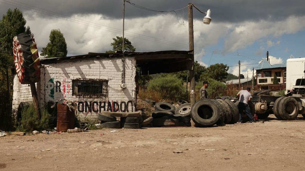 Nett anzuschauen sind entlang der Straße die typischen Kakteen, die auf jeder Tequilaflasche zu finden sind. Allerdings sind die Verästelungen nur selten so schön, wie auf dem Photo oben. Weniger schön ist der viele Plastikmüll entlang der Straßen und auch die Rückstände der vielen Unfälle. Alles bleibt am Wegesrand liegen: verbrannte Wracks, massenweise Scherben und unzählige Reifenreste. Interessant sind die sogenannten Llanteras, wenig vertrauenerweckende Werkstätten neben der Straße. Meistens sind es offene Bretterbudenauf ölverseuchten Böden, in denen geschraubt und geschweißt wird, dass man nur hoffen kann, niemals in die Verlegenheit zu kommen, deren Dienste in Anspruch nehmen zu müssen.