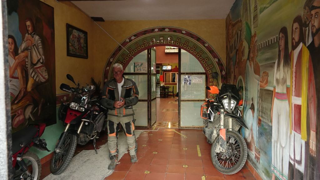Nach fast 500 Kilometern – eine enorme Tagesetappe bei diesen Straßen – landen wir einigermaßen nass in Cintalapa, einer wenig attraktiven, ärmlichen Stadt in den östlichen Bergen Mexikos. Das Hotel Leon, dass wir aufsuchen, sieht von außen um einiges attraktiver aus als es drinnen wirklich ist. Mangels Alternative bleibt es aber dabei. Selbst in diesem traurigen Ort wird rund um die Plaza Mayor ordentlich abgefeiert. Wir essen sehr gut und genießen anschließend zum ersten mal Churros, die auf der Straße angeboten werden. Da würde Ariane sich jetzt sehr drüber freuen. Sie liebt Churros!