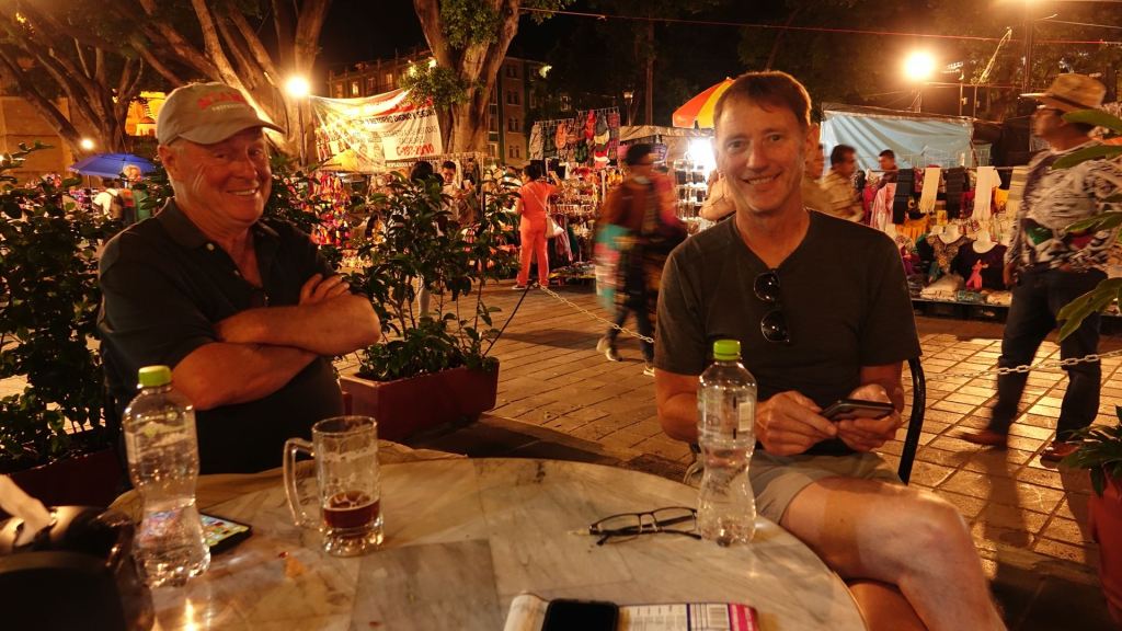 Nachdem das Kennenlernen und das Einrichten im Zimmer hinter uns liegen, begeben wir uns auf einen Stadtbummel. Eine Panflötenband neben dem Dom lässt bei mir Heimatgefühle aufkommen. Gerade als ich Steve und Dave erkläre, dass wir bei uns die gleichen Gruppen in den Städten finden und diese dort immer „El Condor passa“ spielen, stimmt diese Combo genau diesen Titel an! Wir genießen den Abend in der brodelnden Innenstadt und werden wieder mal Zeuge der Feierfähigkeit der Mexikaner. Diesmal waren wir aber klüger und haben unser Zimmer nicht mitten in der Feierzone gewählt und können in Ruhe schlafen.