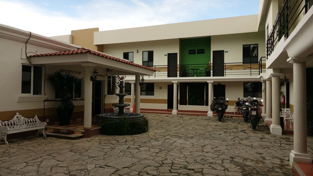 Am späten Nachmittag fahren wir durch Puebla, einer Millionenstadt, in der Volkswagen sein größtes mexikanisches Werk betreibt. Wir erwischen genau die Rush Hour und passen uns dem Fahrstil der Einheimischen an – irgendwie effektiv und macht Freude! Kurz darauffahren wir durch Tepeaca, einem netten, mittelgroßen Ort kolonialer Provenienz. Der zentrale Platz gefällt uns so gut, dass wir uns nach einer Bleibe umsehen und diese auch gleich neben dem Platz finden. Wie selbstverständlich dürfen wir unsere Bikes im Hoteleingang parken, dafür nehmen wir die Abstriche beim Zimmer gerne in Kauf.