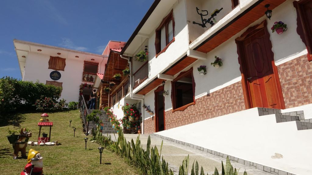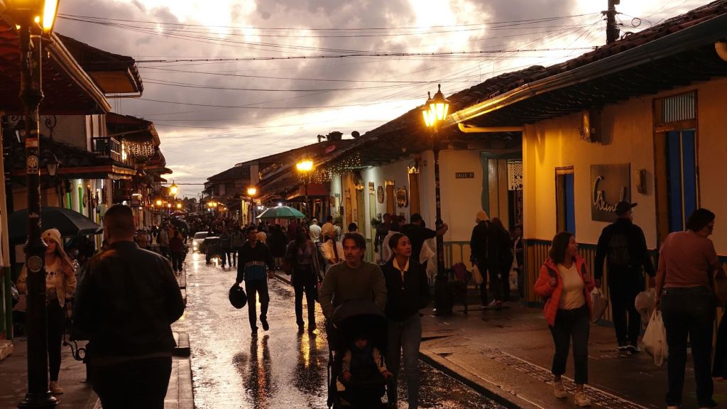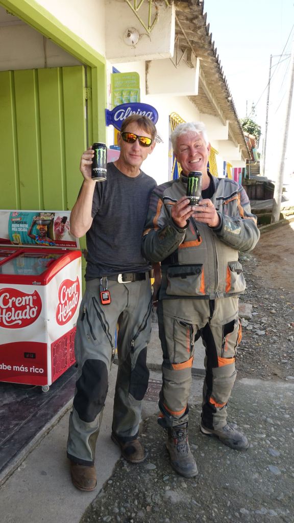 Der Weg nach Salento, so kurz er auch ist, benötigt viel Zeit. Auf kleinsten kurvenreichen Straßen quälen sich Autos und Busse hinauf nach Salento durch einen Regenwald, der in jeder Kurve reißende Bäche auf die Straße fließen lässt. Endlich oben im Ort angekommen, schlängeln wir uns durch den dichten Verkehr auf den schachbrettartig angeordneten Straßen des bunten Bergdorfes. Dave und Steve befriedigen dort als erstes ihre Sucht nach „Monster“ im erstbesten Kiosk.