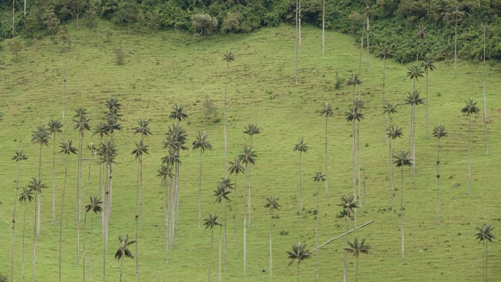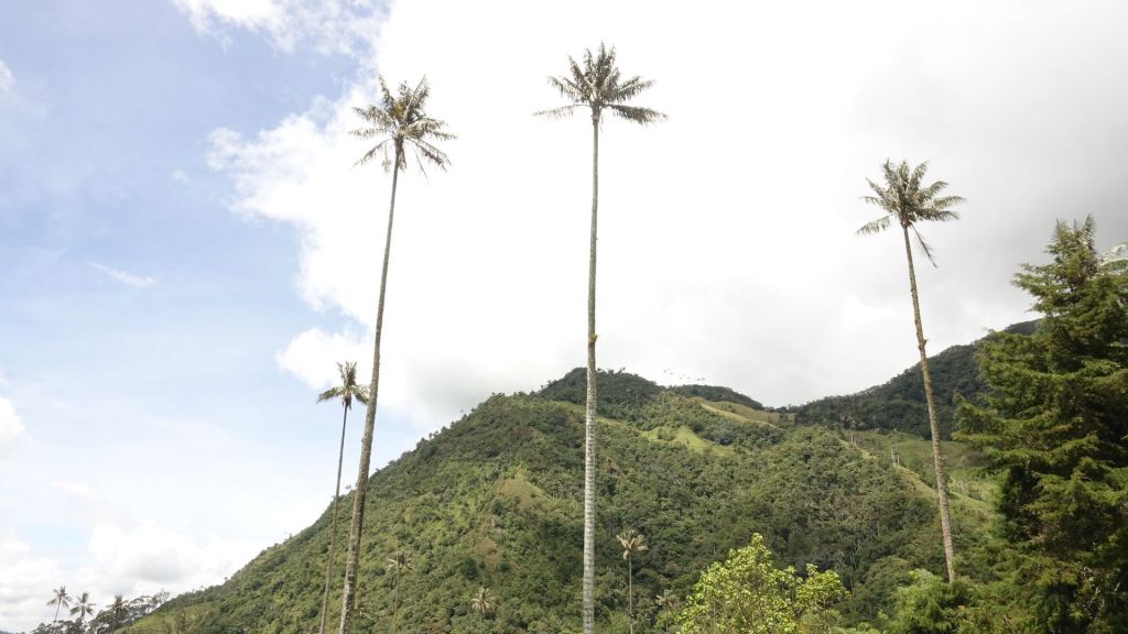 Nachdem wir uns des Gepäcks entledigt haben, steht als nächstes das „Valle de Cocora“ auf dem Programm, das nur gut 10 km von Salento entfernt liegt. Dort wachsen – einzigartig auf der Welt – sogenannte Wachspalmen in „dichter“ Anordnung, sodass man hier von einem Wald spricht. In Wirklichkeit wachsen da einige hundert dieser bis zu 60 Meter hohen Palmen in Abständen von ca. 10-20 Metern. Ein witziges Bild geben diese Bäume ab, das tausende von Menschen an diesem Wochenende hierher lockt und für verstopfte Straßen sorgt.