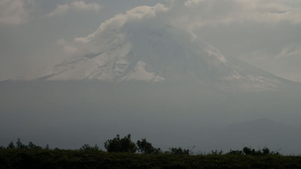 Obwohl das Wetter sehr durchwachsen ist, bekommen wir 50 km südlich von Quito zur Linken den Cotopaxi zu sehen – natürlich zum Teil von Wolken verdeckt, doch er ist auch so ein irrer Anblick, dieser perfekt geformte 5.900 Meter hohe Vulkankegel mit seiner weit hinabreichenden Schneehaube! Leider erlaubt das Wetter keine guten Photos. In der Realität sieht’s trotzdem toll aus!