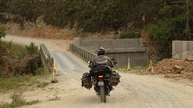 Richtig interessant wird die Fahrt dann ab Riobamba. Wir schneiden die große Ruta 35 über eine Nebenstrecke ab und kommen durch eine Gegend, die sehr indigen geprägt ist. Viele Menschen in traditioneller Tracht laufen die Landstraße entlang und staunen über die Motorradreisenden. Die Straße ist jetzt durch tektonische Aktivitäten arg in Mitleidenschaft geraten. Große, klaffende Risse und enorme Höhenversätze tauchen hinter fast jeder Kurve aus dem Nichts auf und zwingen zum Slalomfahren. Zum Glück ist auf den Straßen so rein gar nichts los. Alle paar Kilometer überholen wir einen LKW, ansonsten gehört uns die Fahrbahn allein. Mangels Brücken und Tunnel werden alle Taleinschnitte von der Straße komplett umfahren, so dass man schon von sehr weitem vorausschauen kann, wo man in der nächsten halben Stunde entlang fahren wird, bzw. wo man vor einer Weile war. Die Weite, die sich dem Auge bietet ist unermesslich, und das trotz des trüben Lichteinfalls aus der permanenten Bewölkung. Ich weiß gar nicht mehr, wann ich zuletzt einen strahlend blauen Himmel gesehen habe. Das muss in Mexiko gewesen sein!