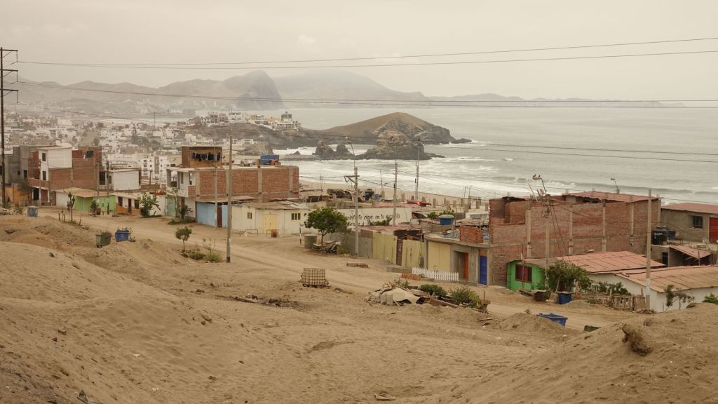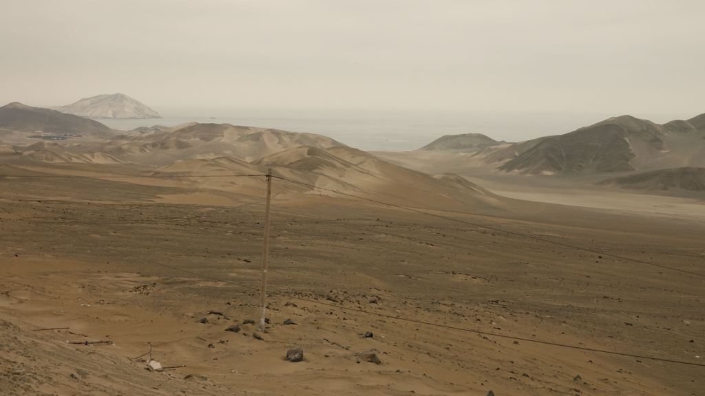Der Samstag führt uns nahe an die Dunstglocke von Lima heran, doch wollen wir uns da heute Abend nicht mehr durchwühlen. So finde ich im GPS ein Hostal am Strand von Chancay, das nicht großartig aber gut genug ist, um sich von der banalen Tagesetappe zu erholen. Wir haben einen Blick aufs Meer und sehen in einiger Entfernung eine Großbaustelle direkt am Meer. Dort wird zur Zeit der Hafen groß ausgebaut. Dazu gehört auch ein Tunnelsystem über das Mineralien (seltene Erden) direkt vom Abbauort zum Hafen transportiert werden. Klingt erstmal ganz fortschrittlich. Übel wird mir dann aber, als ich erfahre, dass das alles von China finanziert und gebaut wird. Die machen mir wirklich Angst mit ihrem weltumspannenden Netz von Verkehrsinfrastruktur, das sie in fast allen finanzschwachen Ländern dieser Erde aufbauen.