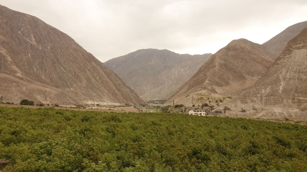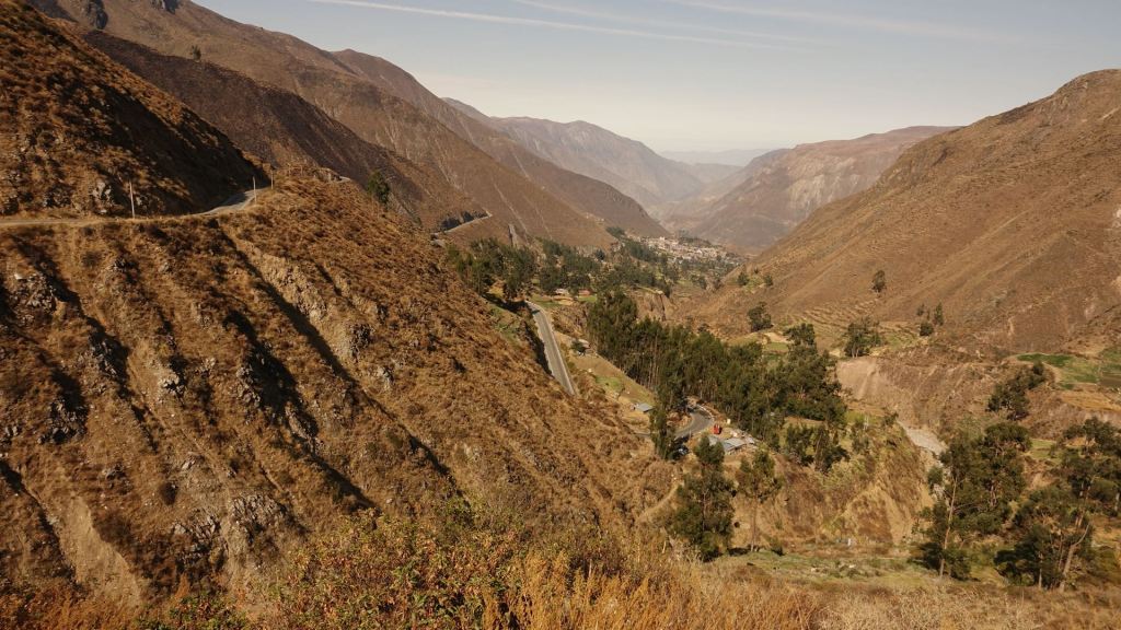 Mit einem späten Mittagessen bei Pisco ist die Küstenetappe glücklich überstanden. Eineinhalb Tage Monotonie, Tristesse, Dreck und Gestank fallen von uns ab, als wir mit jedem Kilometer gen Westen wieder tief in die schöne Bergwelt der Anden eintauchen dürfen. Zunächst sind die Berge noch wüstenartig kahl. Dann füllen sich die Ebenen mit Ackerbau und Obstplantagen. Nach knapp zwei Stunden beenden wir schließlich die Tagesetappe in Huaytará auf 2.700 m, dem letzten größeren Bergdorf bevor die Straße für 200 Kilometer oberhalb von 4.000 m verlaufen wird. Huaytará ist ein bemerkenswert adrettes Örtchen, in dem es den Leuten offensichtlich sehr gut geht. Hier gibt es viele Hotels und Pensionen, denn am Abend will hier niemand mehr in die hohen Berge weiterfahren.