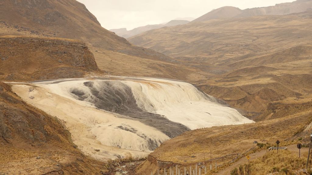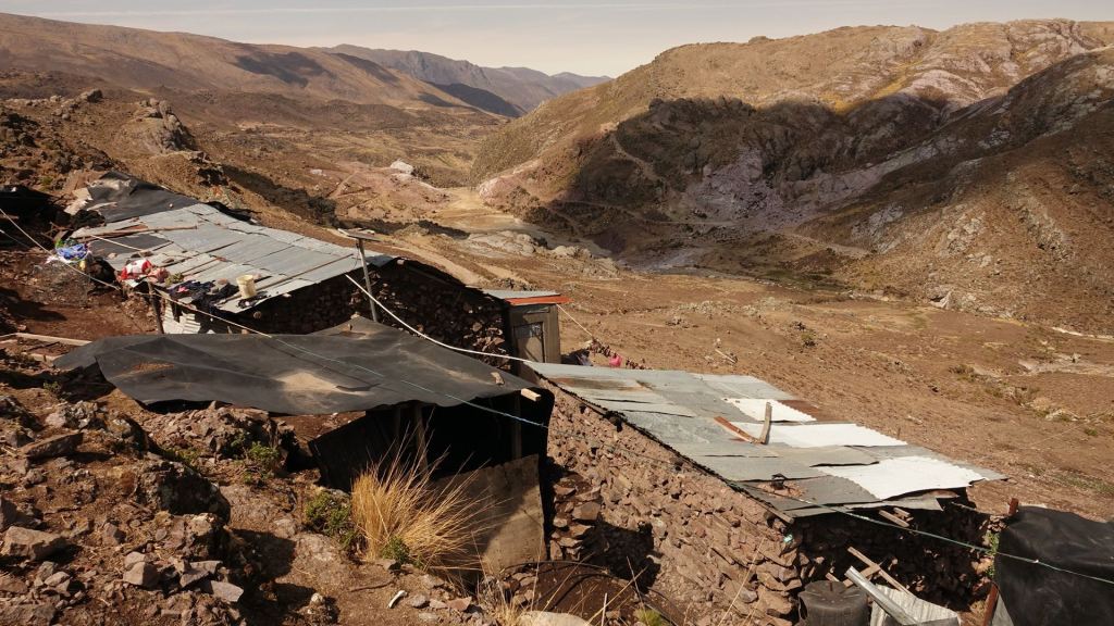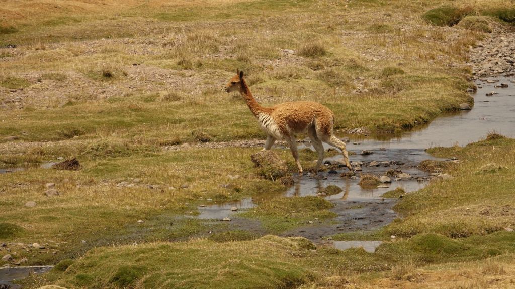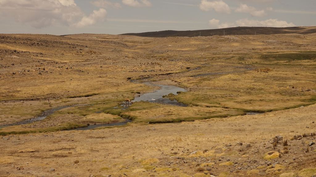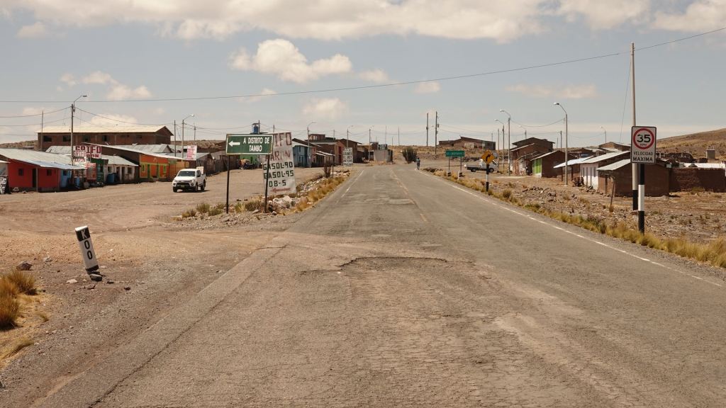 Wieder zurück auf der Passstraße führt uns diese auf eine 4.500 m hohe Hochebene, die solche Weiten freilegt, dass ich mich wie ein Sandkorn in einer Wüste fühle. Es finden sich sogar einige Schneereste. Ansonsten leben hier vor allem Alpacas. Aber auch Menschen siedeln in dieser Höhe. Auf 4.500 m gibt es ein richtiges Dorf!