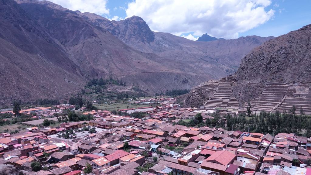 Am Samstag in der Früh gelingt es mir dann endlich auch, – mit Ariane am Telefon – die Fähre zu bezahlen und damit die Buchung zu fixieren; was für eine Erleichterung! Danach ist Stadtbesichtigung und eine Wanderung zu Inkabauwerken in den umliegenden Bergen angesagt. Ollantaytambo ist eine sehr alte Kolonialstadt, die sich anders präsentiert als die meisten der bisher gesehenen Orte. Das beginnt schon mit den Lehmfarben, die hier anstelle von weiß dominieren. Und auch der Baustil ist mit viel Naturstein auffallend anders. Es wimmelt nur so von Hostels und Restaurants, was auf deutlich mehr Touristen zu anderen zeiten hindeutet.