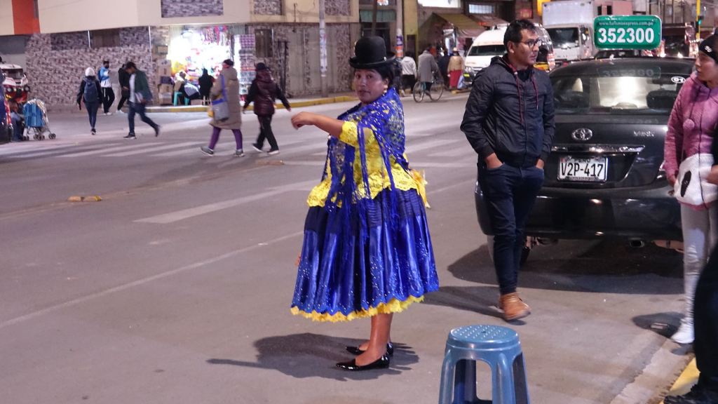 An Cusco vorbei führt uns die ruta 28B auf über 4.000 Meter durch eine Steppenlandschaft. Das Wetter steht die ganze Zeit auf der Kippe, aber außer ein paar Tropfen bleiben wir von Regen verschont. Wir halten die Höhe und erreichen am Nachmittag die Stadt Juliaca, die mir von unserer Reise 2013 noch als unglaublich hässlich in Erinnerung ist. Ja und dieses Urteil hält auch der neuerlichen Bewertung stand. Ich bedaure die vielen Menschen, die in diesem Ort leben müssen! Für uns sind es nur 30 Minuten, doch die sind übel genug!