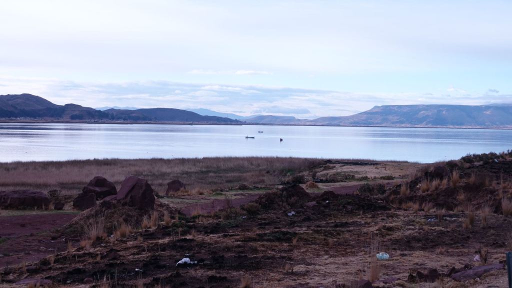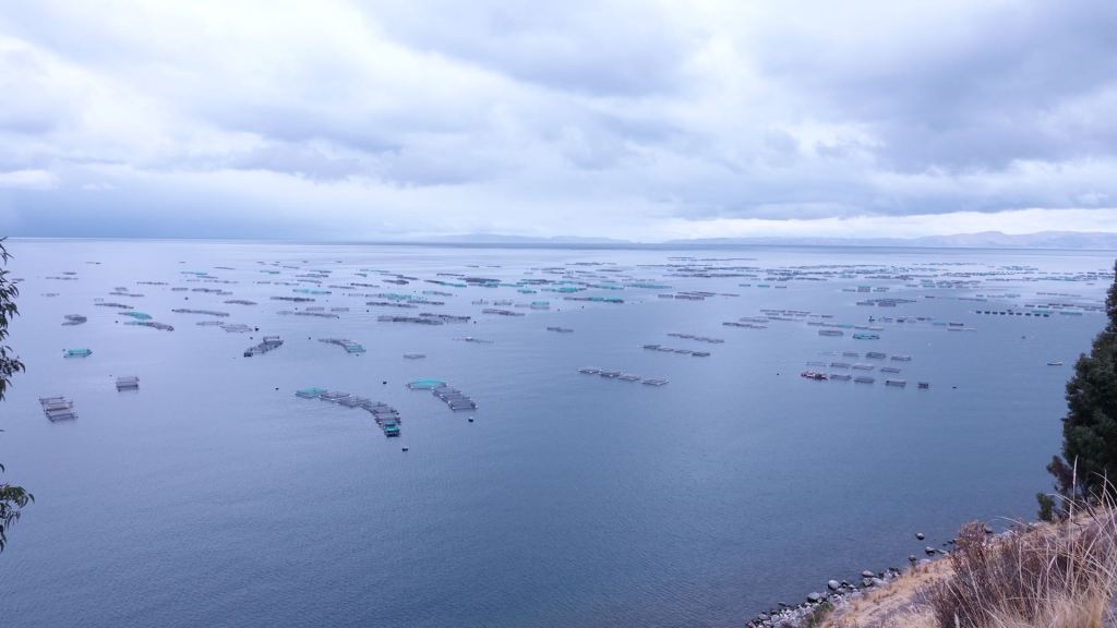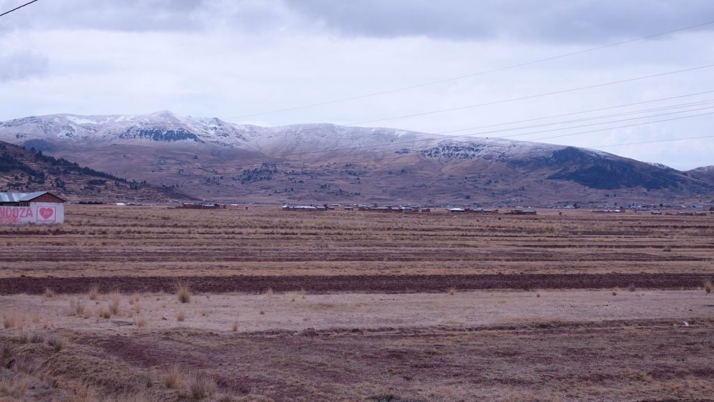 Ohne Abschiedsschmerz verlassen wir am Dienstagmorgen Puno schon recht früh, um die Grenze nach Bolivien bei Zeiten zu überschreiten. Die Fahrt entlang des Titicacasees bietet immer wieder schöne Blicke auf den See und auf zum Teil mit leichtem Schnee bepuderte Berge. Der See scheint sehr stark befischt zu werden, wenn man die Zahl der Reusen als Indiz nehmen will.