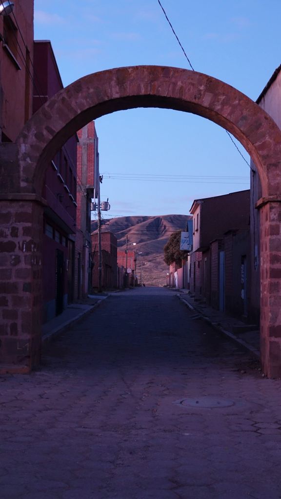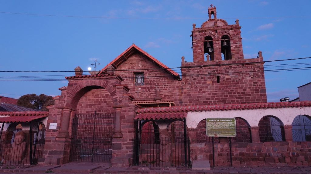Im letzten Tageslicht fahren wir noch 50 Kilometer bis nach Tiawanacu, einer kleinen Stadt etwas abgelegen von der Hauptstraße, die eine tolle Überraschung ist. Erscheint sie bei Einfahrt zunächst vollkommen schmuck- und trostlos, so entpuppt sie sich hinter der inneren Stadtmauer als kleines Juwel mit schicker Plaza de Armas und einer 500 Jahre alten, kolonialen Kathedrale. Wir finden eine sehr nette Unterkunft bei einer sehr freundlichen und offensichtlich gebildeten Dame in traditioneller Tracht. Diese erklärt uns mit Stolz ihre Stadt und begeistert uns mit ihrer Gastfreundschaft. Generell versprühen die Menschen, die wir in Tiawanacu auf der Straße treffen, eine besondere Herzlichkeit und bekunden Interesse an den Fremden, die offensichtlich weit gereist sind. Wir sind auf Anhieb verliebt in dieses Land!